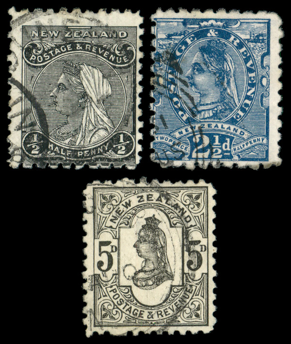 5838 O 67A-69 image1891-95, Queen Victoria "Side Face", ½d-5d (Scott 67A-69), set of 3, Fine to Very Fine.
