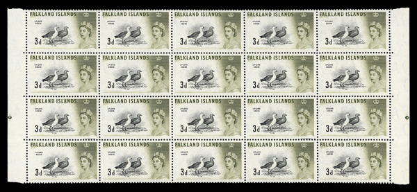 5809 nhbl 132 image1960, 3d Queen Elizabeth II & Upland Geese (Scott 132), block of 20, o.g., never hinged, Very Fine.