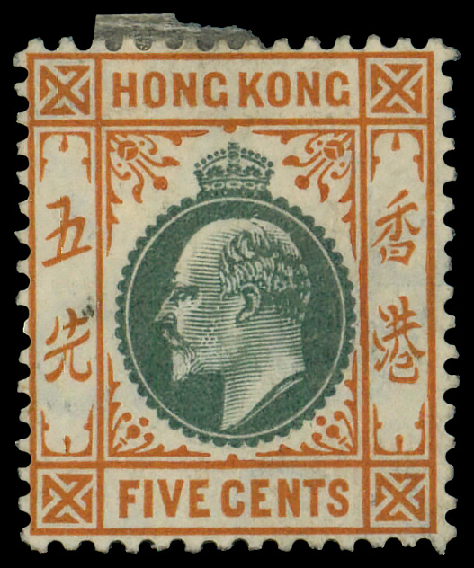 5812 og 91 image1904, King Edward VII, 5¢ dull green & brown orange, ordinary paper (Scott 91), Multiple Crown CA watermark, o.g., hinge remnants, Fine to Very Fine.