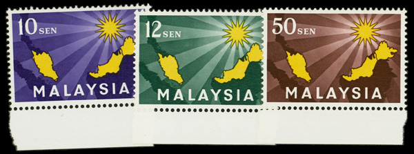 5824 nh 1-3 image1963 10s - 50s Map of malaysia and 14 Point Star complete (Scott 1-3), complete set of marginal singles, o.g., never hinged, Very Fine to Extremely Fine.