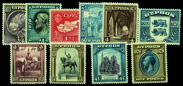 5803 og 114-123 image1928, Anniversary of British Rule complete (Scott 114-123), set of 10, complete set of singles, o.g., lightly hinged or hinge remnant, Fine to Very Fine.