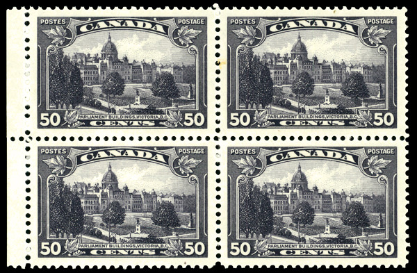 5977 nhbl 226 image1935, 50¢ Parliament Buildings in Victoria B.C. (Scott 226), block of 4, o.g., never hinged, Extremely Fine.