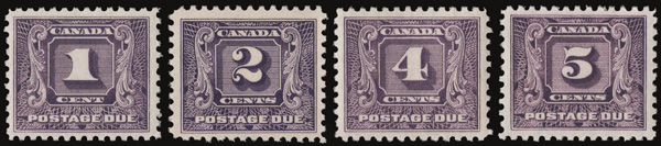 5993 nh J6-J10 imagePostage Dues, 1930, 1¢ to 10¢ complete (Scott J6-J10), o.g., never hinged, a fresh, exceptionally well centered set, Very Fine to Extremely Fine.