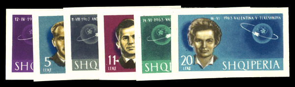 6012 nh 680-685 image1963, Man's conquest of space 3l bright purple - 20 ultramaine imperforates complete (Scott 680-685), complete set of imperforate singles, o.g., never hinged, Fine to Very Fine.