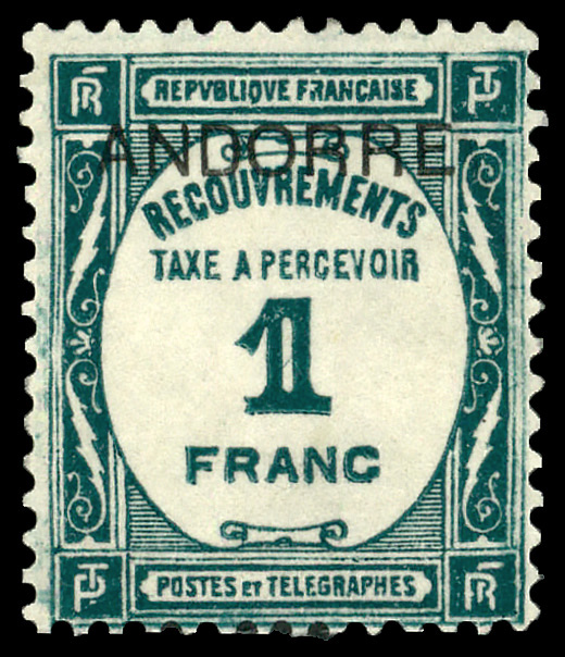 6013 og J12 image1932 Numeral 1fr Prussian green (Scott J12), single, o.g., lightly hinged, Fine to Very Fine.