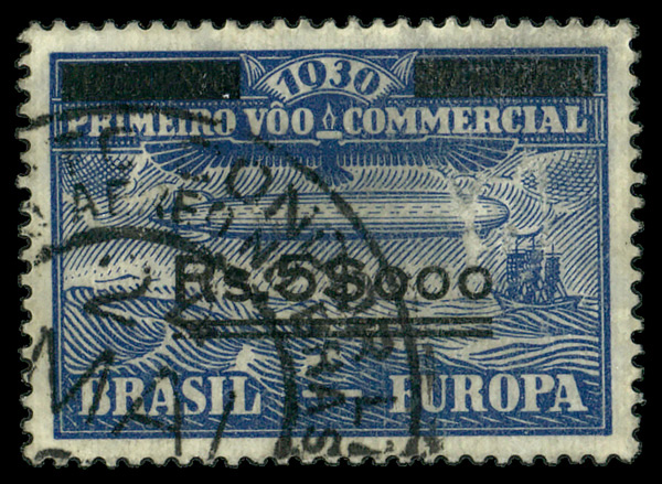 6027 O 4CL4 image1930, Graf Zeppelin Flight stamps 20000r blue surcharged 5000r (Scott 4CL4), single, Fine to Very Fine.