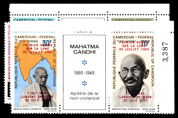 6029 nh C111-C116 image1969, Issued to Honor exponents of non-violence overinted for the First Man / Landing on Moon type II (Scott C111-C116), complete set of singles, o.g., never hinged, Fine to Very Fine, See foot note before Scott C117.
