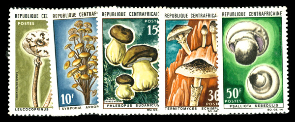 6030 nh 81-85 image1967, Mushrooms 5fr-50fr complete (Scott 81-85), complete set of singles, o.g., never hinged, Fine to Very Fine.