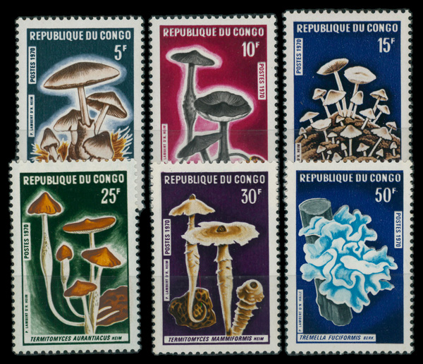 6040 nh 208-213 image1970, Mushrooms 5fr - 50fr complete (Scott 208-213), complete set of singles, o.g., never hinged, Fine to Very Fine.