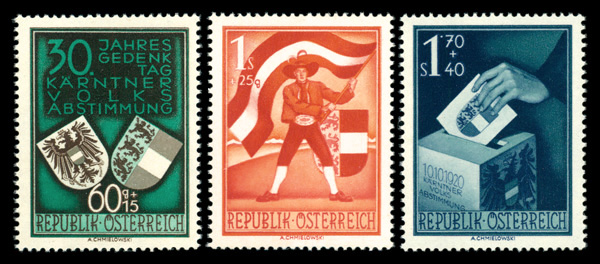 6016 nh B269-B271 image1950, Carinthia Plebiscite complete (Scott B269-B271), set of 3, o.g., never hinged, Extremely Fine.