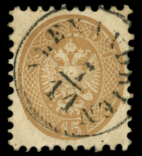 6018 O 24 image1864 Double Eagle 15s yellow brown, perf 9½ (Scott 24), Fine to Very Fine.