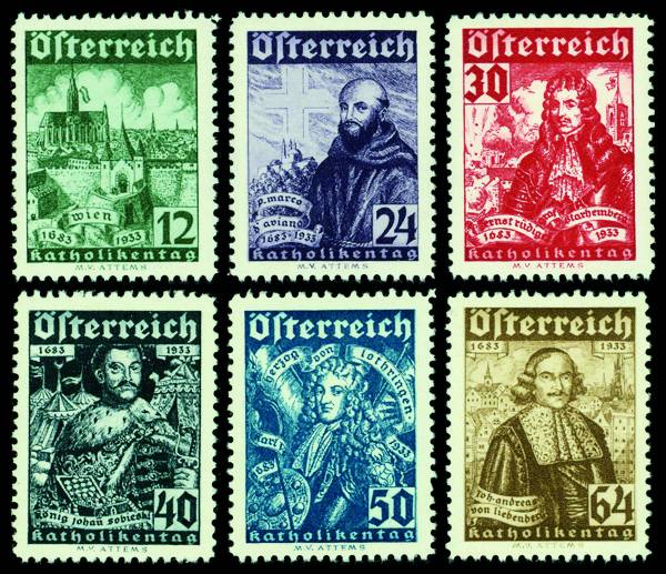 6015 og B112-B117 image1933, Catholic Congress and Deliverance of Vienna from the Turks complete (Scott B112-B117), set of 6, o.g., hinge remnants, Very Fine to Extremely Fine.