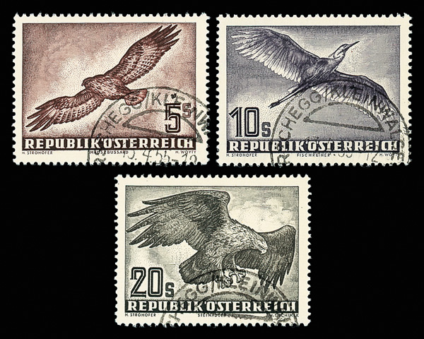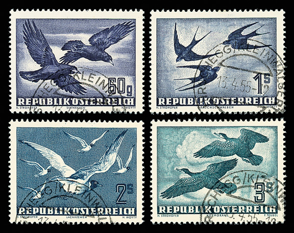 6017 O C54-C60 imageAirmail, 1950-53, Birds, 60g to 20s complete (Scott C54-C60), set of 7, Extremely Fine.