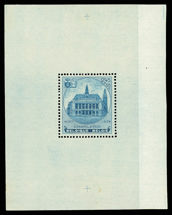 6025 nh B179 image1936 Charleroi Exhibition souvenir sheet (Scott B179), o.g., never hinged, Very Fine to Extremely Fine.