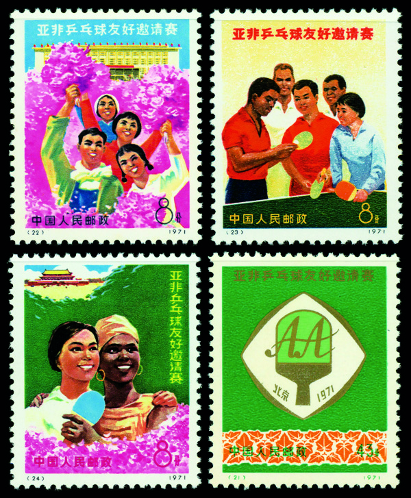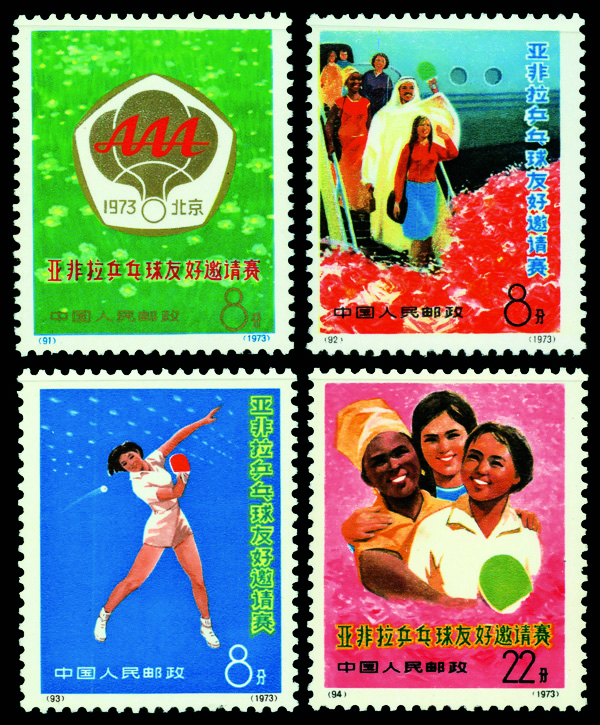 6033 ng 1076-1079 image1971, Afro-Asian Table Tennis Tournament (N5) complete (Scott 1076-1079), without gum as issued, Very Fine.