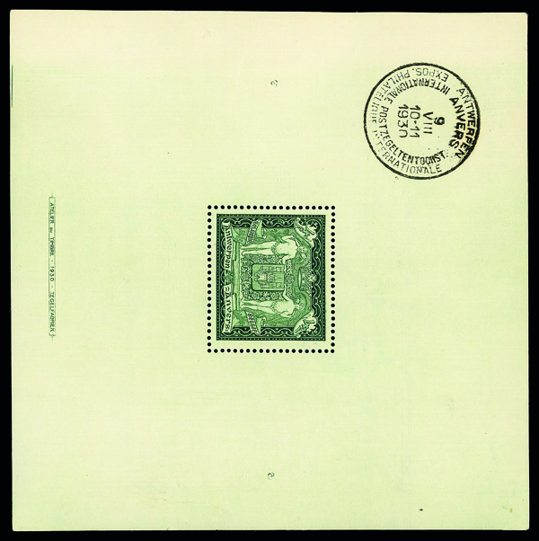 6022 nh 221 image1930 Antwerp Exhibition souvenir sheet (Scott 221), o.g., never hinged, Very Fine to Extremely Fine.