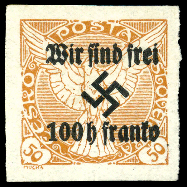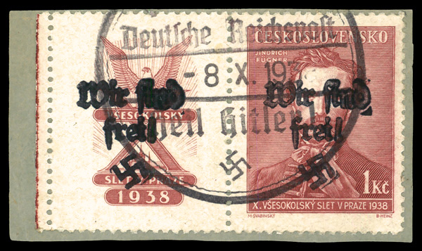 6130 O 135 image1940, 10th Sokol Summer Games with commenorative tab overprinted (Michel 135), left margin single, Fine to Very Fine.