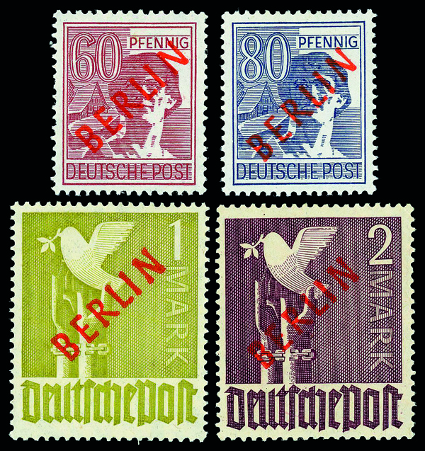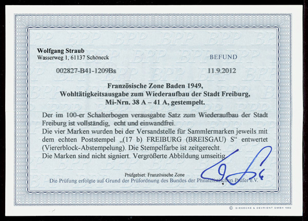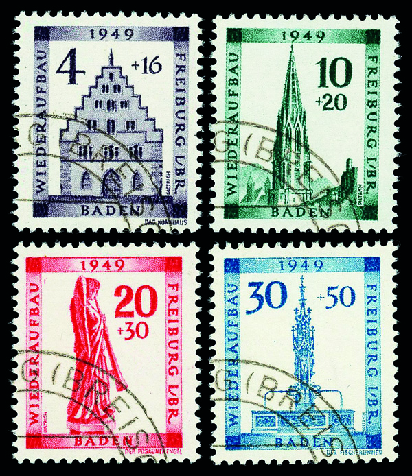 6142 O 5NB5-5NB8 image1949, Freiburg Reconstruction complete (Scott 5NB5-5NB8), set of 4, Very Fine to Extremely Fine, with 2012 Straub certificate.