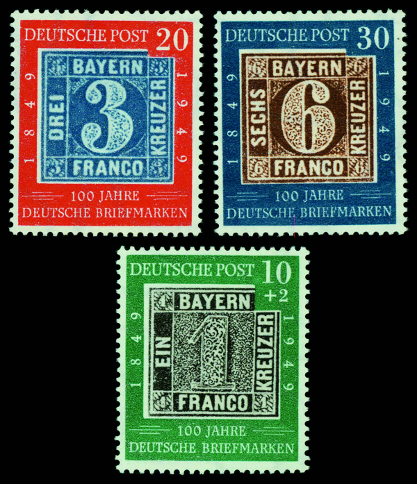 6159 nh 667-668 & B309 image1949, German Stamps Centenary, complete (Scott 667-668 & B309), set of 3, o.g., never hinged, Very Fine.