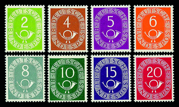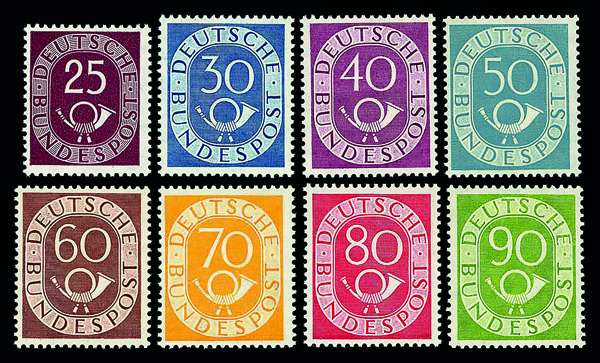 6160 nh 670-685 image1951-52 Post Horns complete (Scott 670-685), set of 16, o.g., never hinged, Extremely Fine, signed Schlegel.