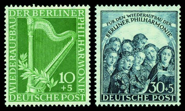 6156 nh 9NB4-9NB5 image1950 Philharmonic complete (Scott 9NB4-9NB5), o.g., never hinged, Fine to Very Fine.