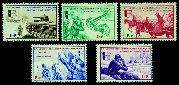 6134 nh VI-X image1942, +1fr French Volunteer Legion, complete, set of 5, o.g., never hinged, Fine to Very Fine.