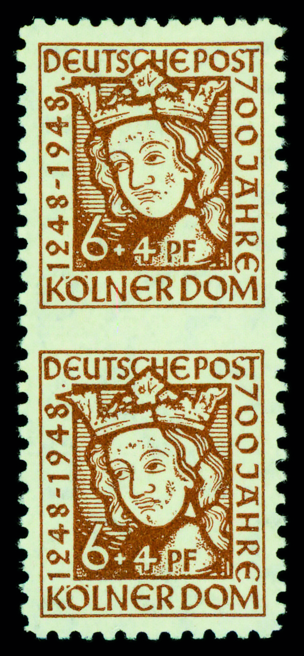 6139 og 69 WA UMw image1948, 6pf+4pf orange brown, imperf between (Michel Mi69 WA UMw), vertical pair, o.g., lightly hinged, Extremely Fine.