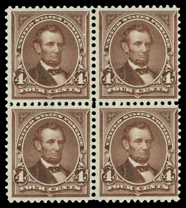 5084 nhbl 280a image1898, 4¢ lilac brown (Scott 280a), block of 4, o.g., never hinged, Fine.