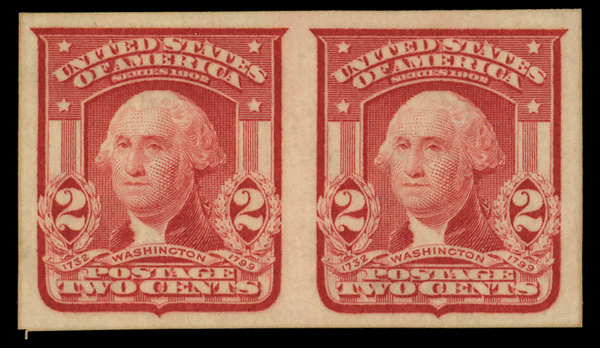 5107 nh 320c image1906, 2¢ carmine rose, type I, imperf. (Scott 320c), pair, o.g., never hinged, Extremely Fine.