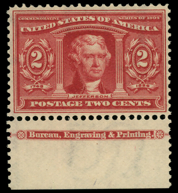5110 nh 324 image1904, 2¢ Louisiana Purchase (Scott 324), single with part imprint, o.g., never hinged, Very Fine to Extremely Fine.