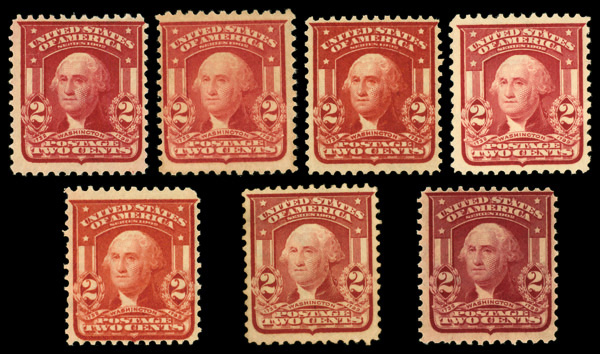 5106 nh/og 319 & 319F image1903, 2¢ color varieties, type I & type II (Scott 319 & 319F), o.g., some never hinged / some hinged, generally Fine to Very Fine.