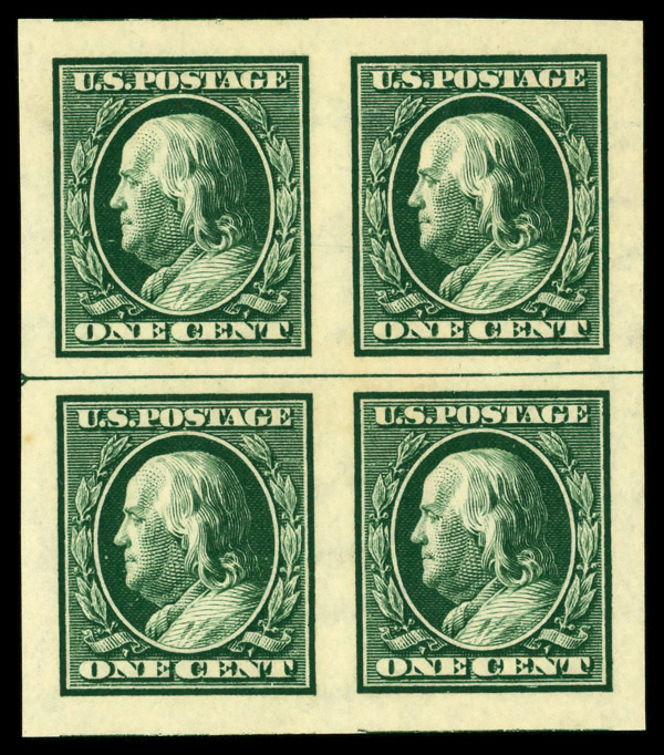 1908-1909 Washington-Franklin Issue, DL wmk, imperf