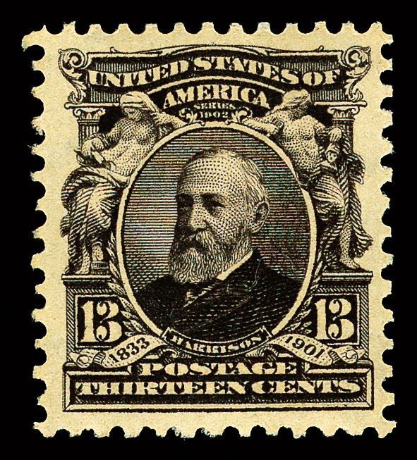 5102 nh 308 image1902, 13¢ purple black (Scott 308), Ideal large margin proportions, o.g., never hinged, Very Fine to Extremely Fine.