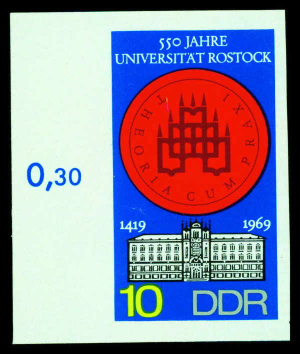 6180 P 1150 image1969, 10pf Rostock University, imperf. (Scott 1150), o.g., never hinged, Extremely Fine, signed Zierer.