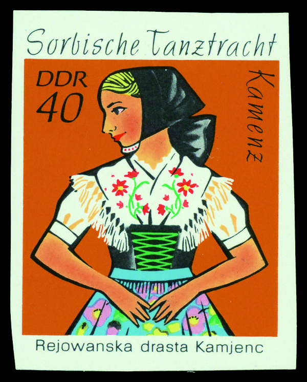 6183 P 1297 image1971, 40pf Kamenz Dance Costume, imperf. (Scott 1297), o.g., never hinged, Very Fine to Extremely Fine.