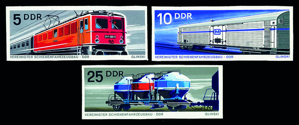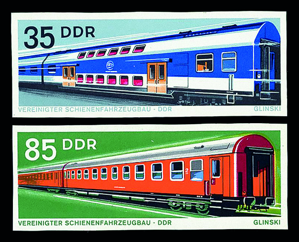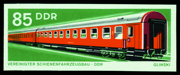 6186 P 1467 image1973, 85pf Railroad Cars, imperf. proof (Scott 1467), o.g., never hinged, Extremely Fine.