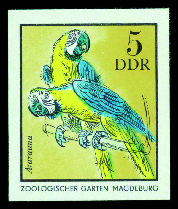 6190 P 1630 image1975, 5pf Blue & Yellow Macaw, imperf. proof (Scott 1630), o.g., never hinged, Extremely Fine.