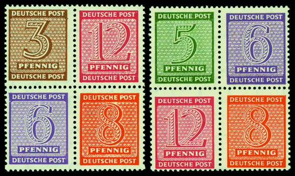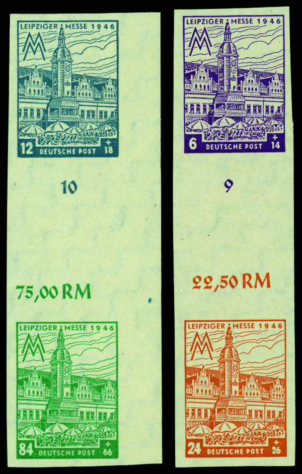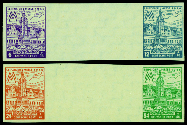 6194 nh SZd7By-8Bxa image1946, 6pf-84pf Leipzig Market Square, imperf., vertical pairs with gutter between, o.g., never hinged, Very Fine to Extremely Fine.