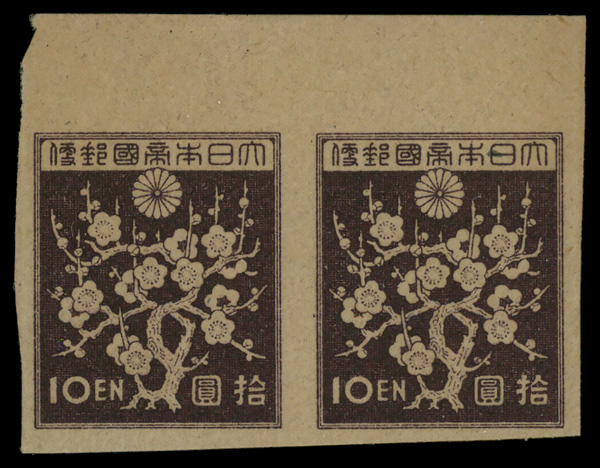 6233 ng 361 image1945, 3rd Showa Series, 10y Plum Blossoms (Scott 361), pair, without gum as issued, Fine to Very Fine.