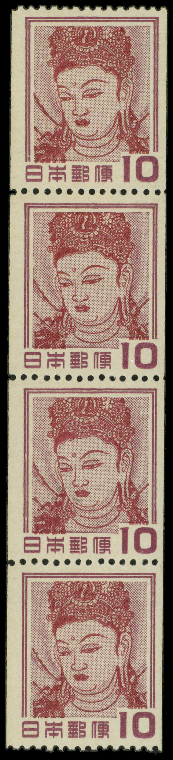 6234 nh 672 image1959, 2nd National Treasures Series, 10y Goddess Kannon, coil (Scott 672), vertical coil strip of 4, o.g., never hinged, Fine to Very Fine.