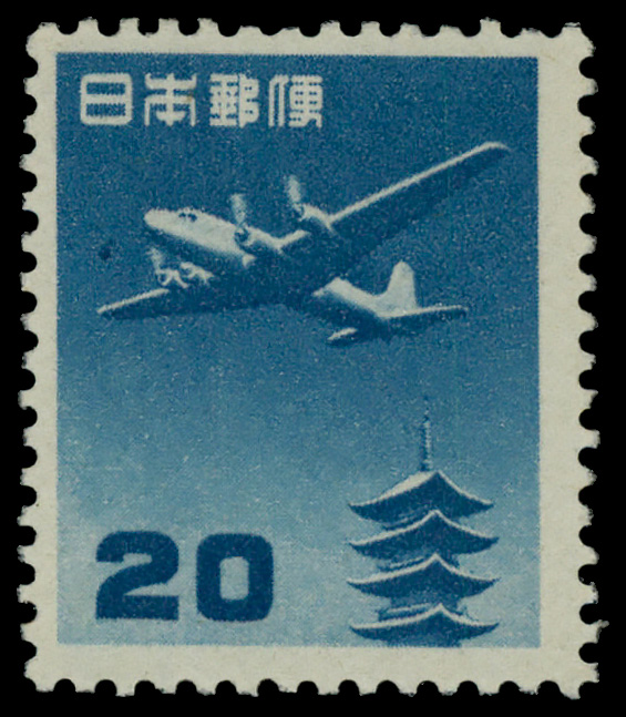 6235 nh C26 image1952, Pagoda Airmail, without zeroes, 20y blue (Scott C26), single, o.g., never hinged, Fine to Very Fine.