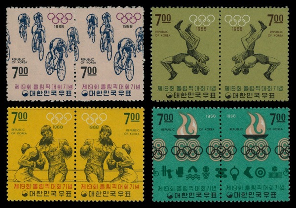 6236 nh 617b-623b image196819th Olympic Games Mexico City complete (Scott 617b-623b), complete set of pairs, o.g., never hinged, Fine to Very Fine.