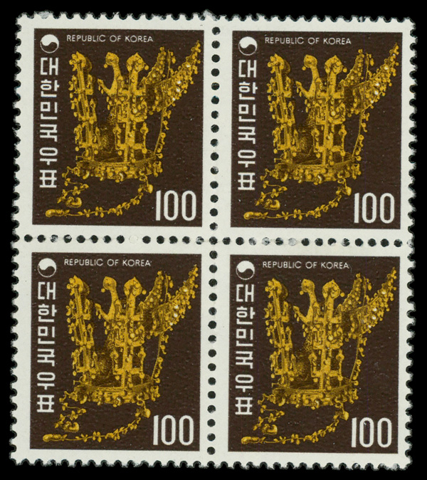 6238 nhbl 653 image1974, 100w Gold Crown, Silla Dynasty (Scott 653), set of 44, block of 4, o.g., never hinged.