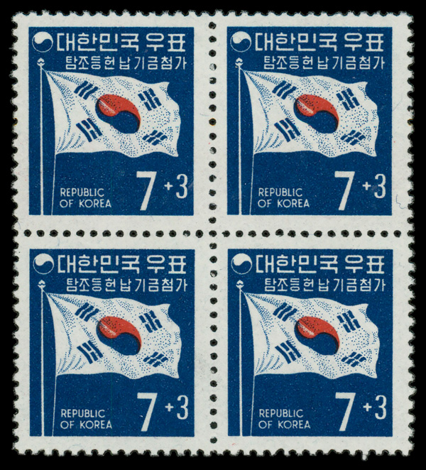 6240 nhbl B13 image1969, 7w+3w dark blue & red Flag (Scott B13), block of 4, o.g., never hinged, Fine to Very Fine.