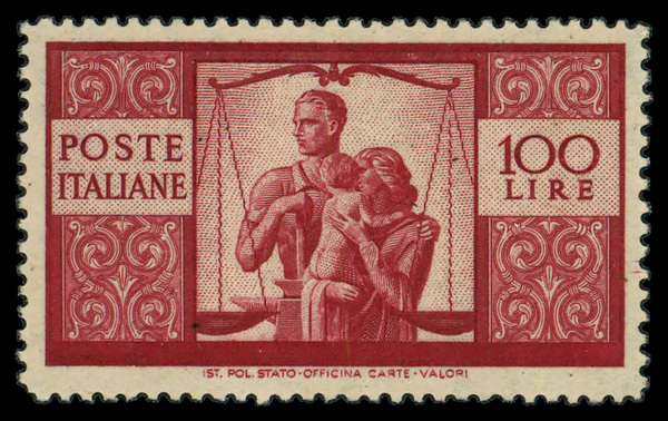6216 nh 477 image1946, 100l Carmine lake, United Family and Scales (Scott 477), single, o.g., never hinged, Fine to Very Fine.