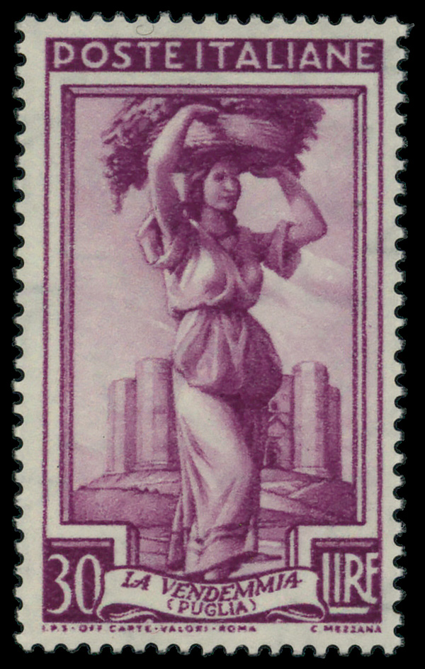 6218 nh 672 image1955, 30l magenta, Woman carrying grapes (Scott 672), single, o.g., never hinged, Fine to Very Fine.