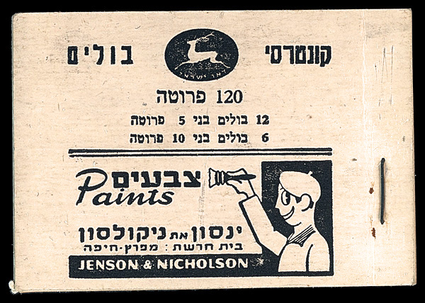 6206 BKnh 18-19 image1949-1950, Ancient Judean Coins, 5p purple & 10p green in complete booklet (Scott 18-19), complete and unexploded, o.g., never hinged, Fine to Very Fine.