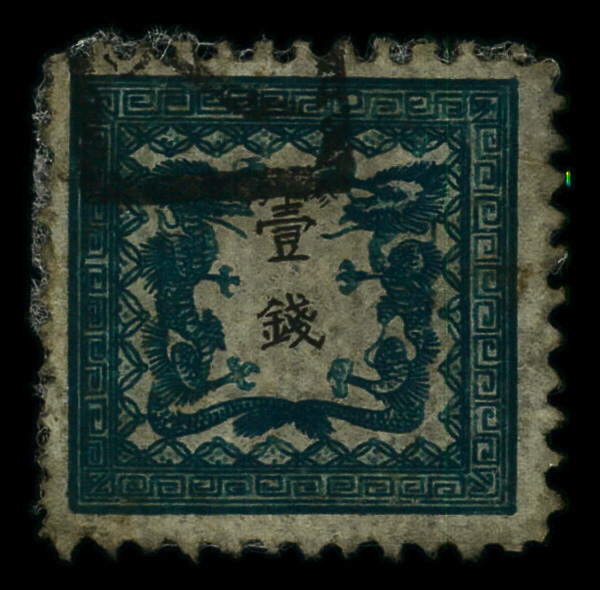 6222 O 2 image1871, Dragon, 100m blue, plate 1, laid paper (Scott 2); UL margin notch, Very Fine to Extremely Fine.