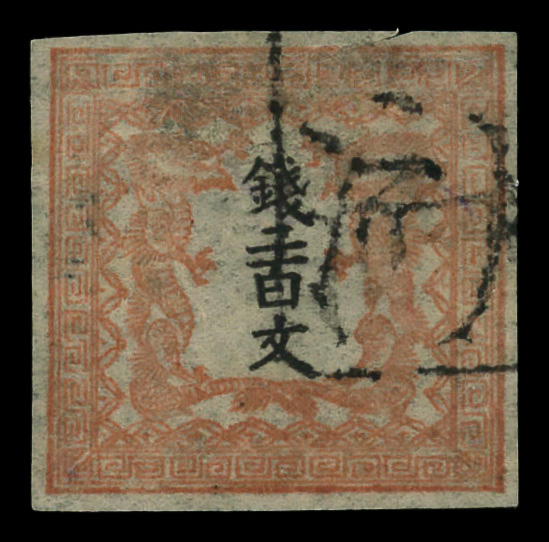 6223 O 3 image1871, Dragon, 200m vermilion, plate 1, laid paper (Scott 3), Very Fine.