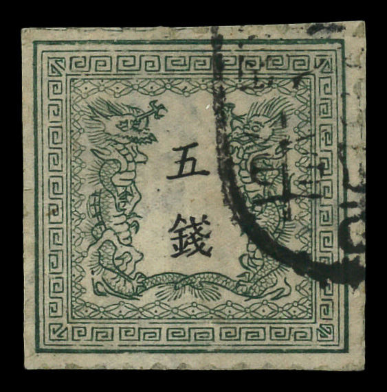 6225 Z 8 image1872, Dragon, 5s blue green, laid paper (Scott 8), Very Fine.